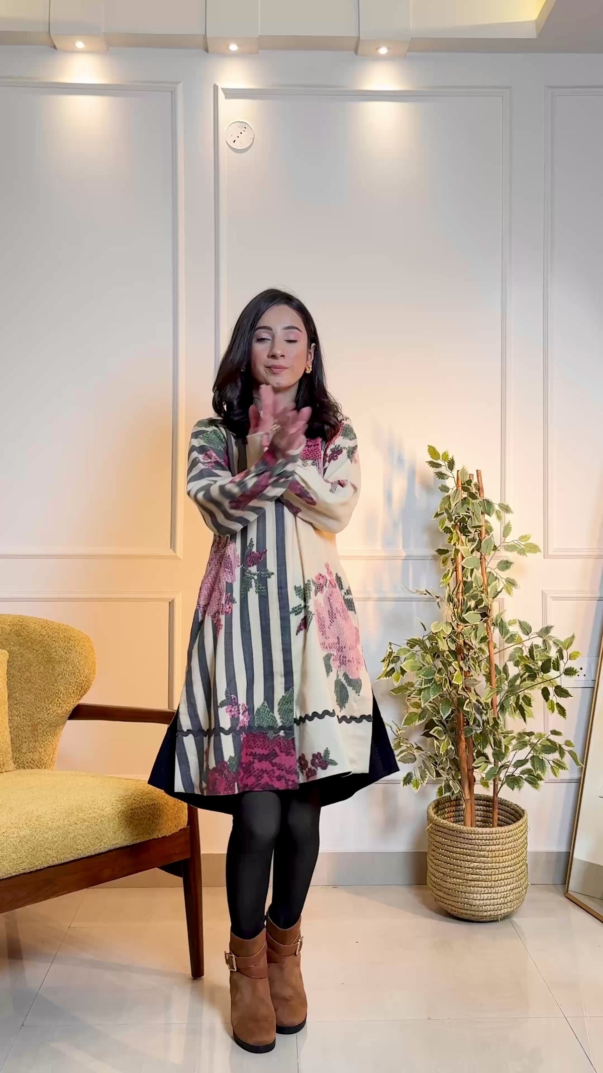 The December Love Dress blends beige and black in a striking color-blocked design that’s equal parts soft and bold. Its sleek silhouette and sharp lines create effortless elegance, making it perfect for both daytime polish and evening drama. A modern classic, ready to captivate.                                                                 Material : 100% Pure Merino Wool                                        Â