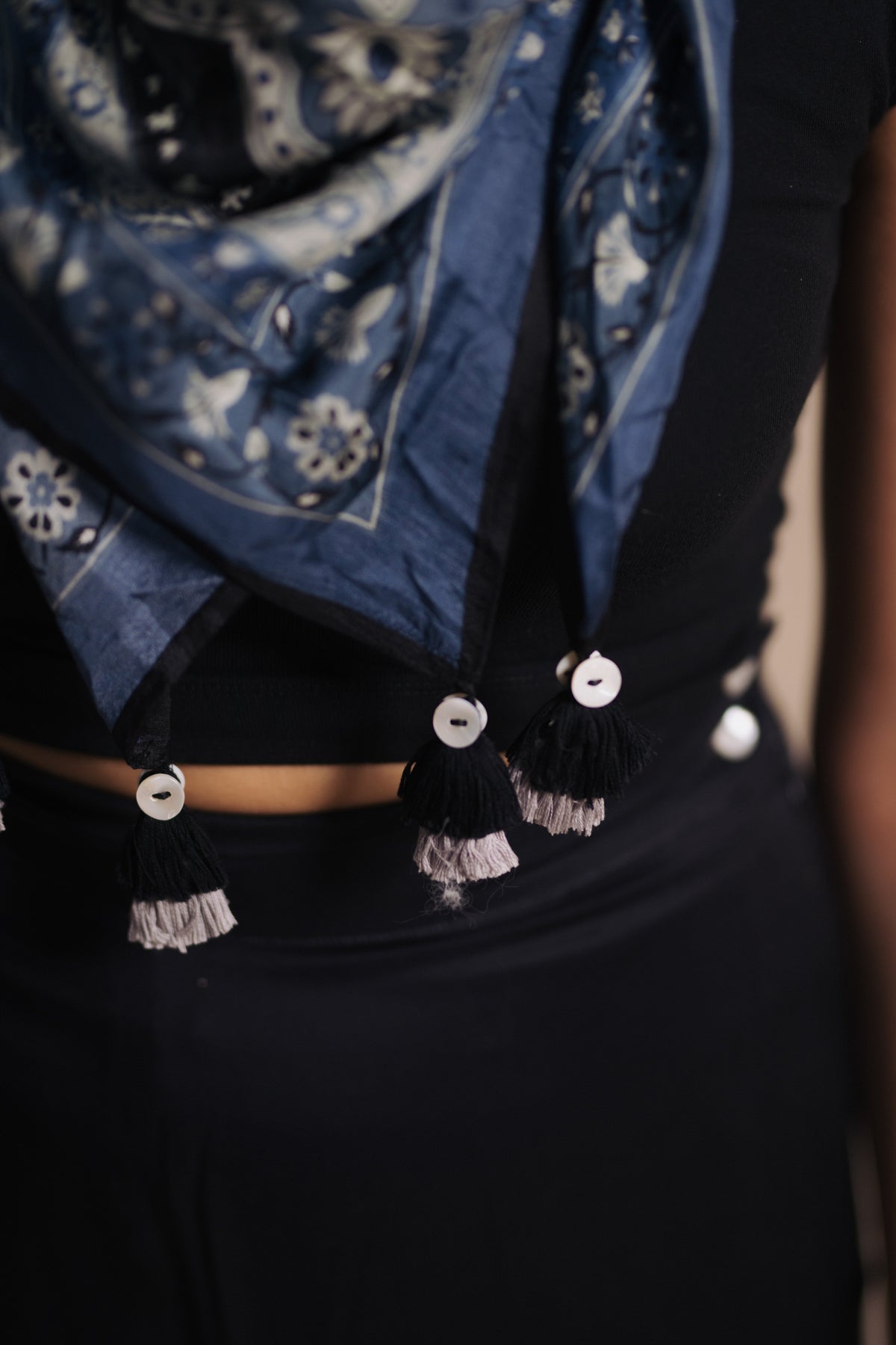 Mirroring the gushing and glistening Indus, that connects several regions united by the love for paisley, the Indus Moon Scarf is a vision of the mighty river on a moonlit night.