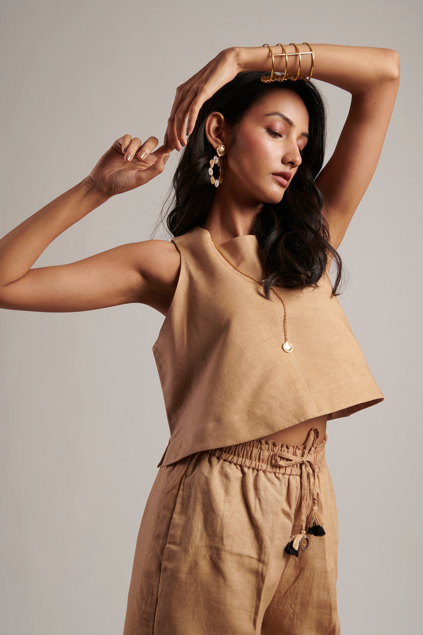 Perennially wearable, evergreen to layer, the Bliss Crop Top is the aura of sophistication omnipresent in your everyday wardrobe. Its simplicity with fuss-free sleeveless silhouette and minimalistic detailing makes it easy to transition between looks, days, and seasons absolutely unrestricted.