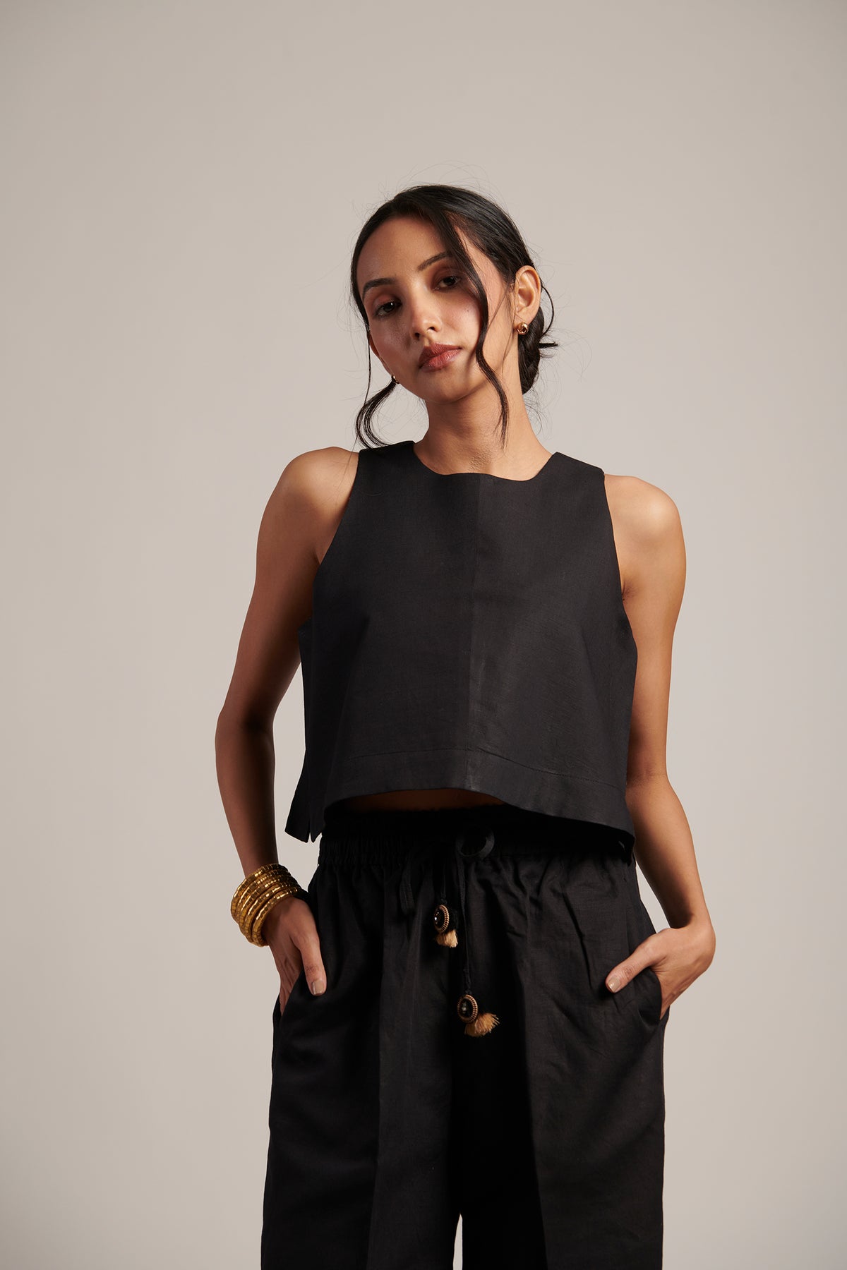 Perennially wearable, evergreen to layer, the Bliss Crop Top is the aura of sophistication omnipresent in your everyday wardrobe. Its simplicity with fuss-free sleeveless silhouette and minimalistic detailing makes it easy to transition between looks, days, and seasons absolutely unrestricted.