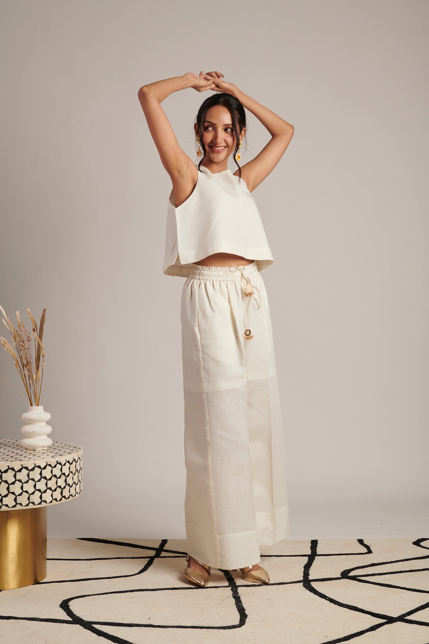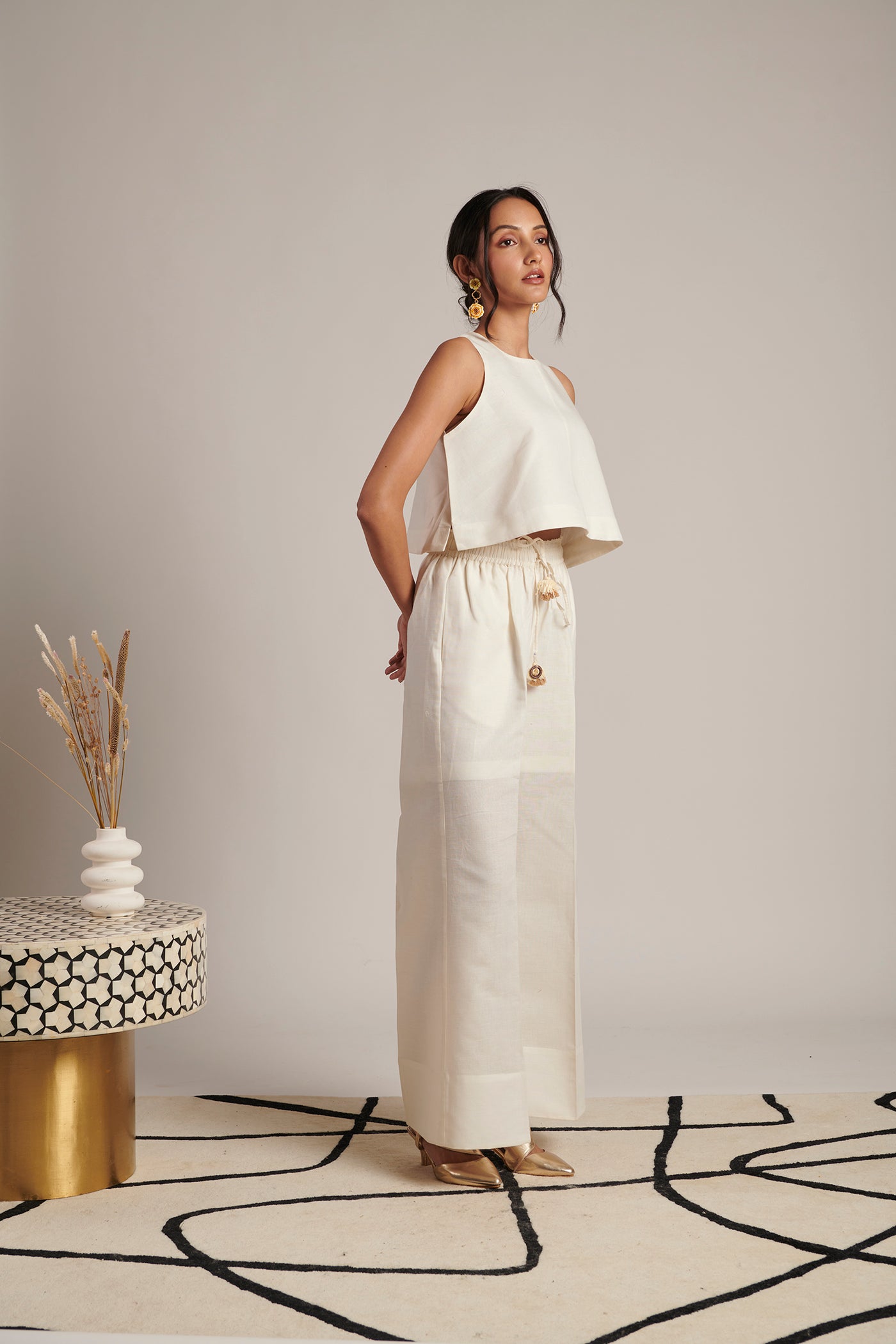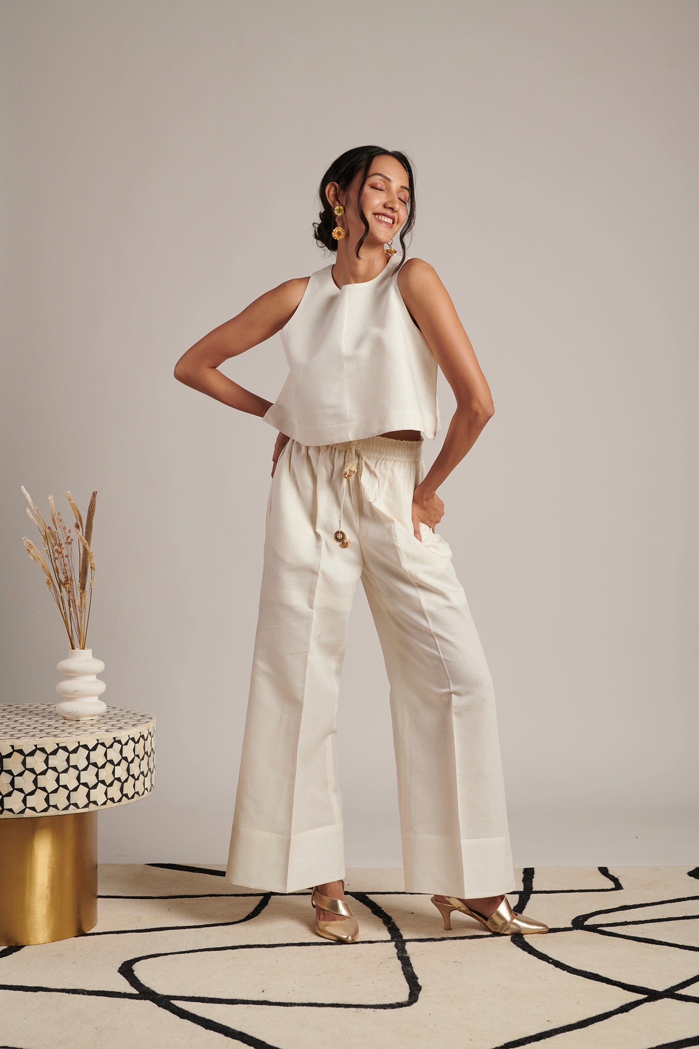 Perennially wearable, evergreen to layer, the Bliss Crop Top is the aura of sophistication omnipresent in your everyday wardrobe. Its simplicity with fuss-free sleeveless silhouette and minimalistic detailing makes it easy to transition between looks, days, and seasons absolutely unrestricted.