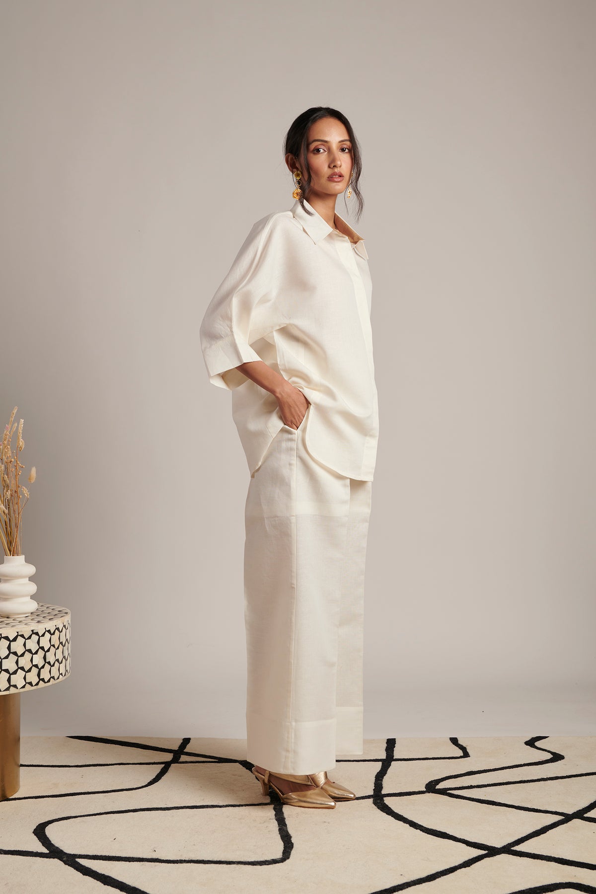 All yours to pair and play, our Celeste Trousers are known to become home. With the most minimal effort, achieve a cohesive ensemble as you combine it with kurtas, tunics, shirts, tank tops, t-shirts and practically anything else in your wardrobe, even if you’re feeling like throwing on a few layers on top. An honest straight cut silhouette with inner half lining of pure cotton muslin is sure to keep you confident and comfortable for airports, movie nights in or dine outs.