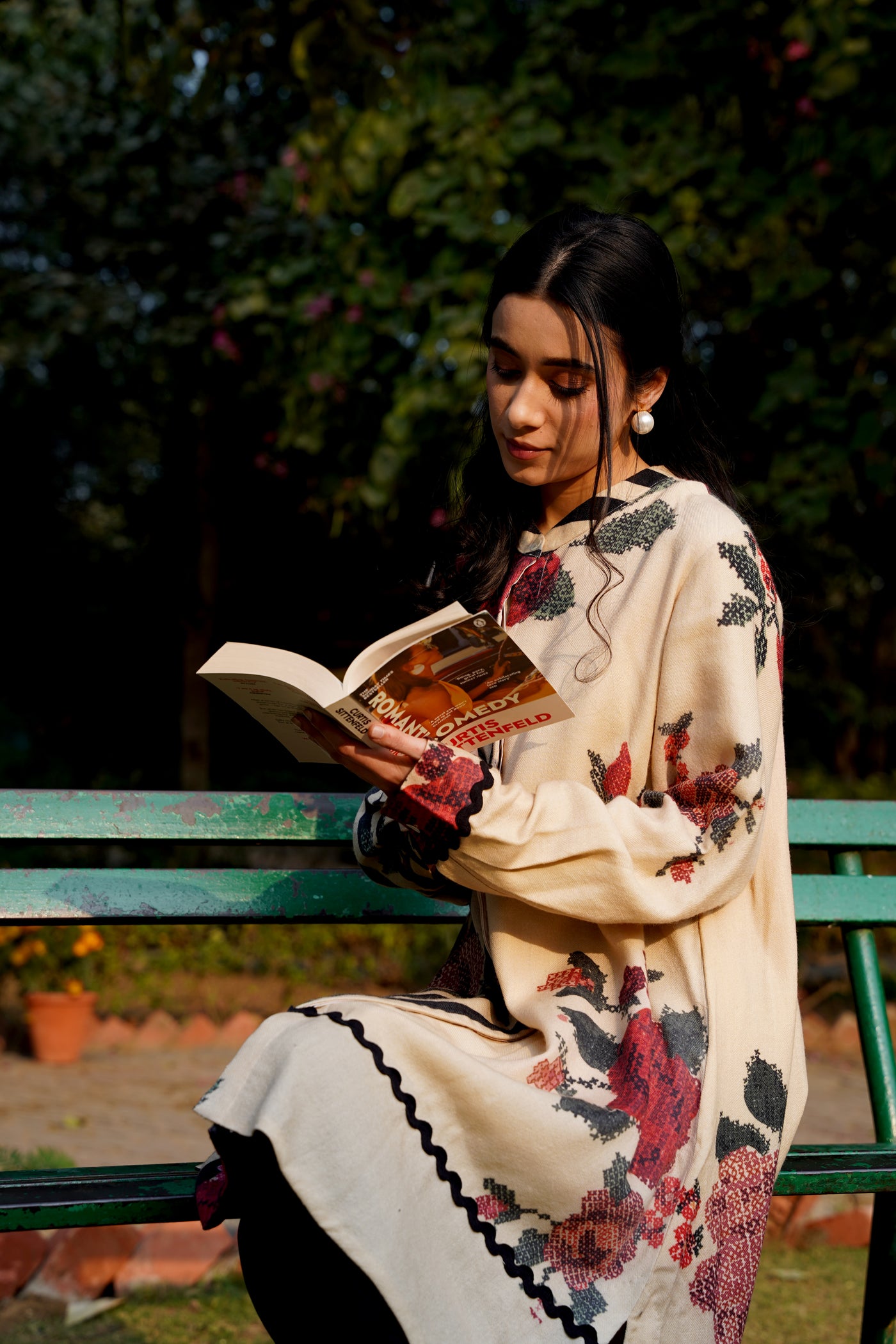 Quickshop Mohtarma's Rose Garden Saree Set is crafted from sheer, feather-light ivory organza,... Add to Cart