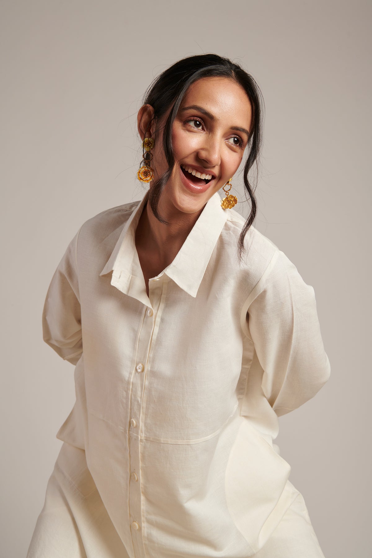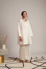 On days when you don’t feel like doing anything except putting your feet up on the couch or on days when you feel like you’re ready to conquer the world, you’ll find our Desire Co-ord Set as your emotional support in your corner. A daily staple that knows how to preserve itself for occasions, it comes with a minimal shirt tunic with front buttons paired with straight cut pants (lined up to knees with pure cotton muslin for comfort).