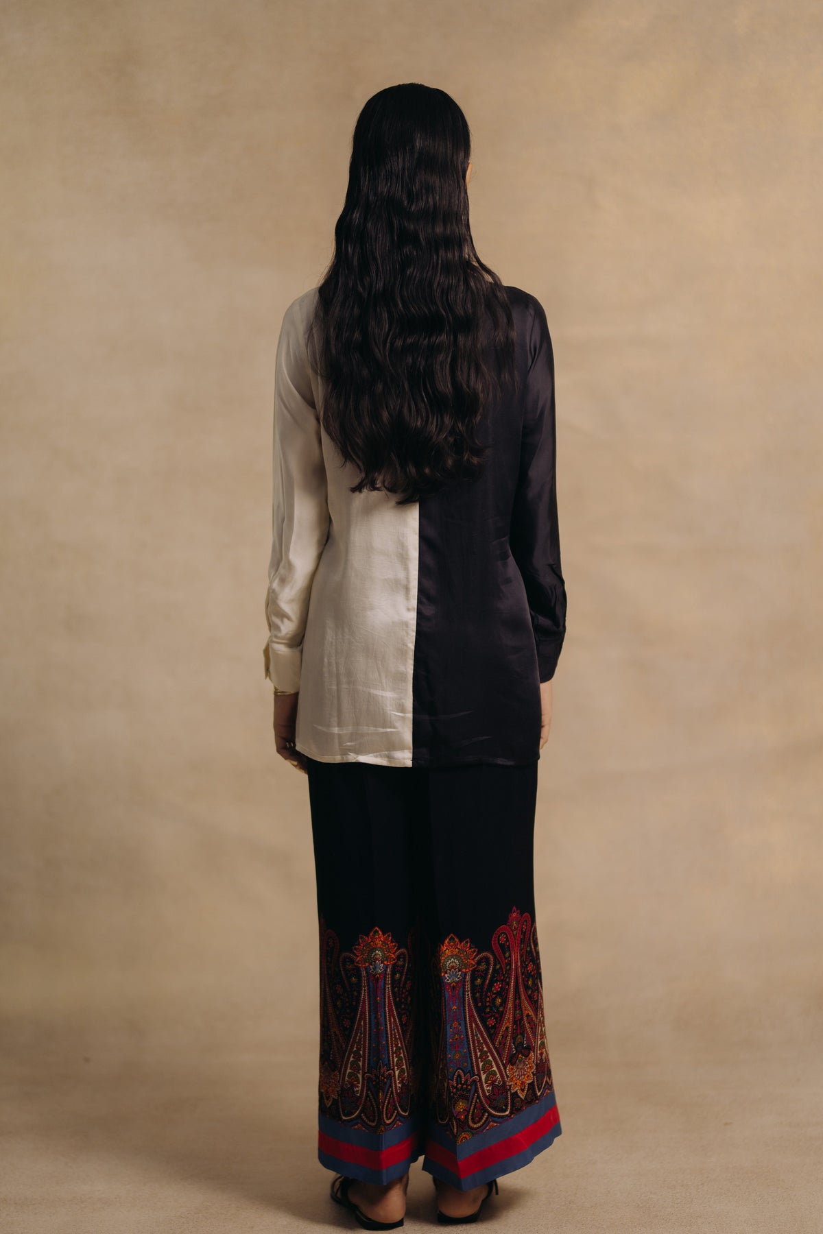 Magnificence in simplicity, multiplicity in versatility. The Kashmere Tunic reflects another side to the royal tastes that often show “less is more”. An absolute pairable with other intricate pieces from the collection, it is an absolute statement piece on its own.
