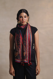 Quickshop The Maharani Bagh Scarf draped in the lush depths of burgundy woven... Add to Cart