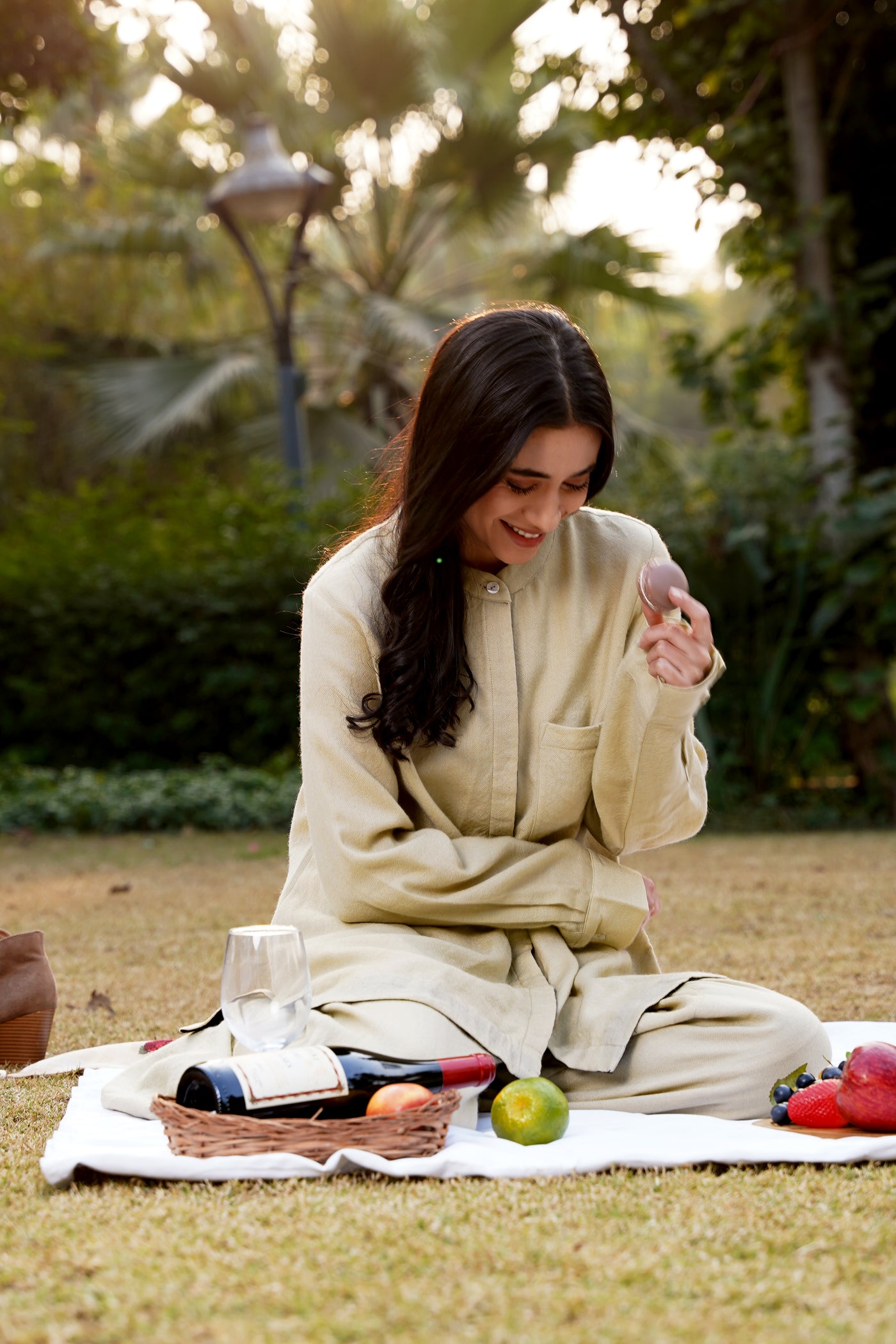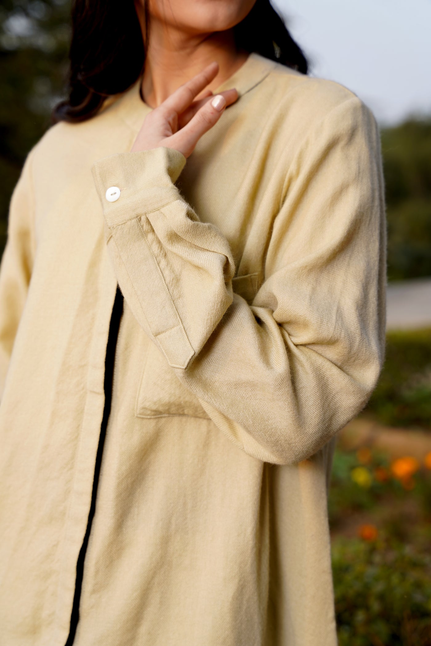 Soft, serene, and endlessly versatile, Morning Dawn is the epitome of elevated basics. This beige merino wool co-ord set, with its sleek mandarin collar, effortlessly combines comfort and sophistication. Designed to be a timeless wardrobe staple, it adds a subtle touch of refinement to any collection. Perfect for layering or worn on its own, it offers the perfect balance of ease and elegance, transitioning seamlessly from day to night. For those who appreciate understated luxury, this set is an essential for creating effortlessly chic, classic looks.