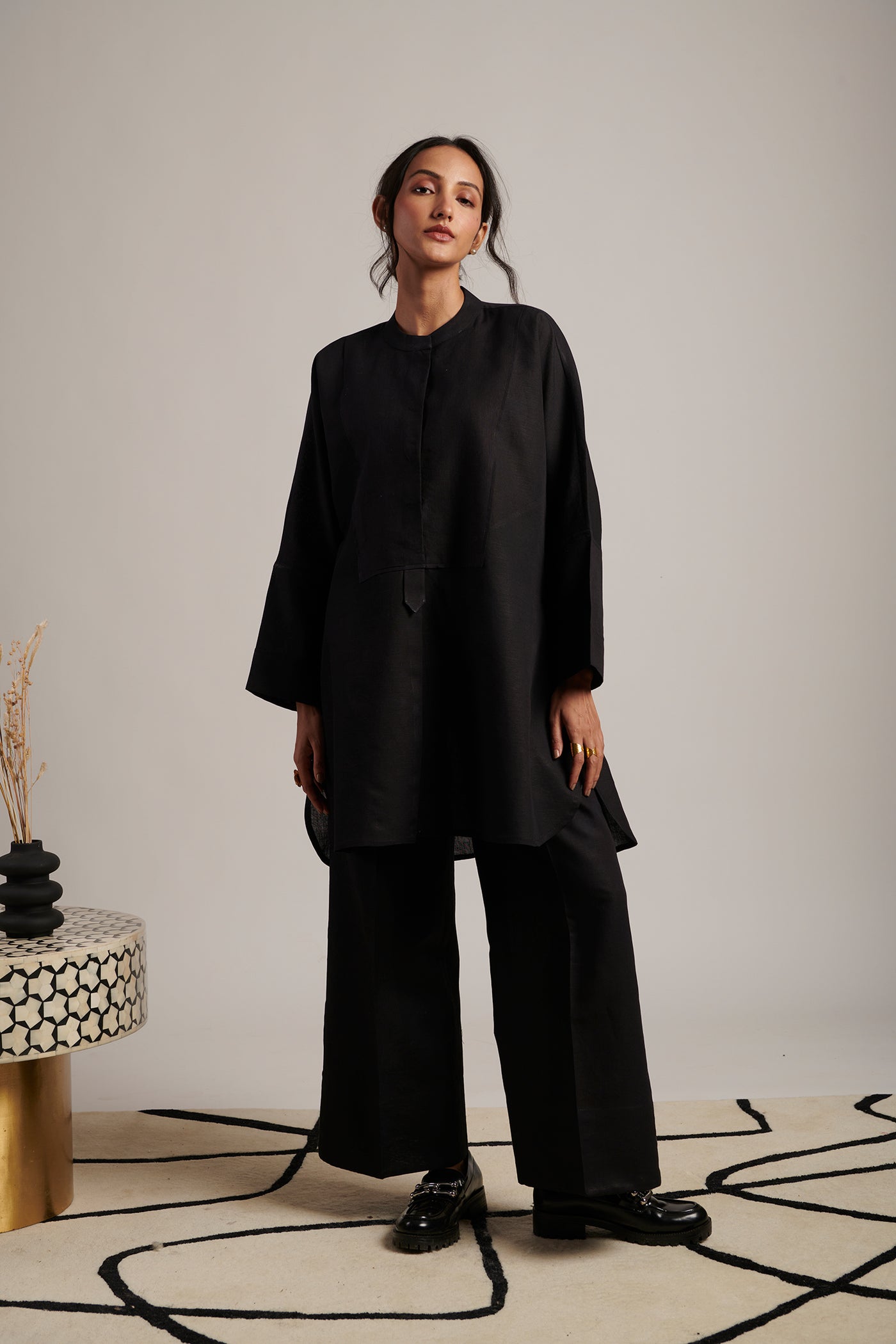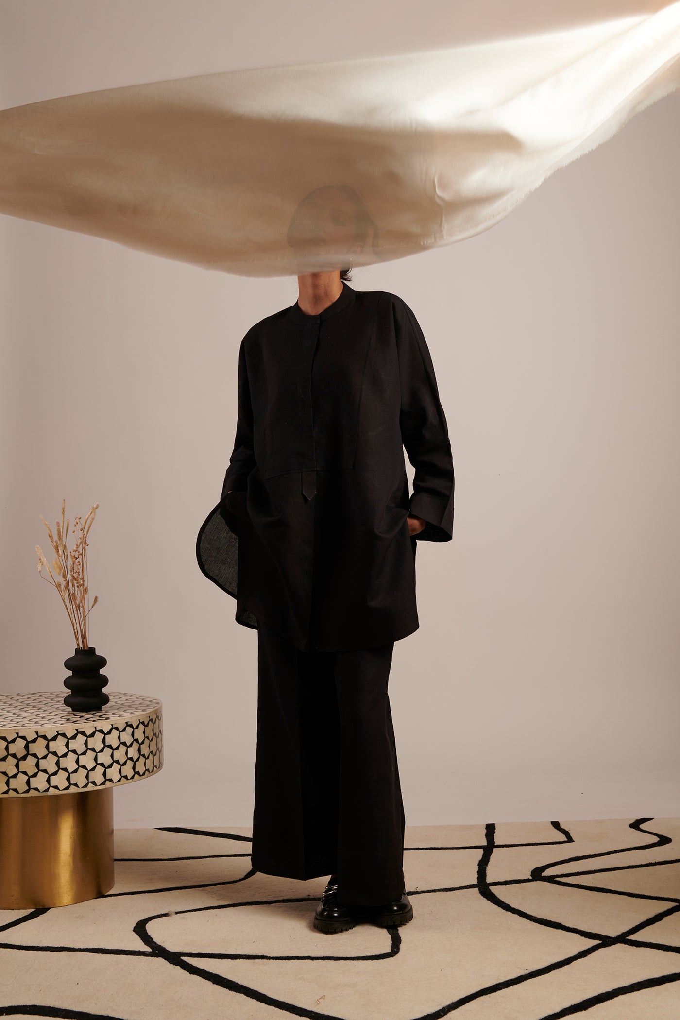 Named after the feeling it embraces you in the moment you slip into it, the Nirvana Co-ord Set is your identical twin, reflecting your state of mind through your style. A perfectly understated pair of versatile trousers worn under an airy tunic with minimal discreet button detailing can easily become your airport look for seasons to come.