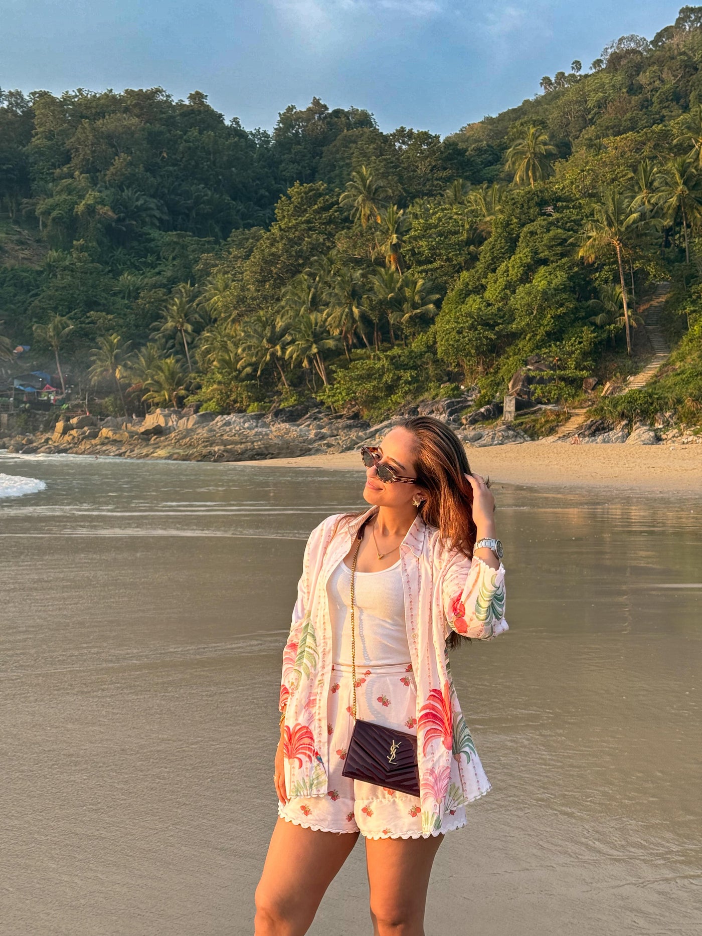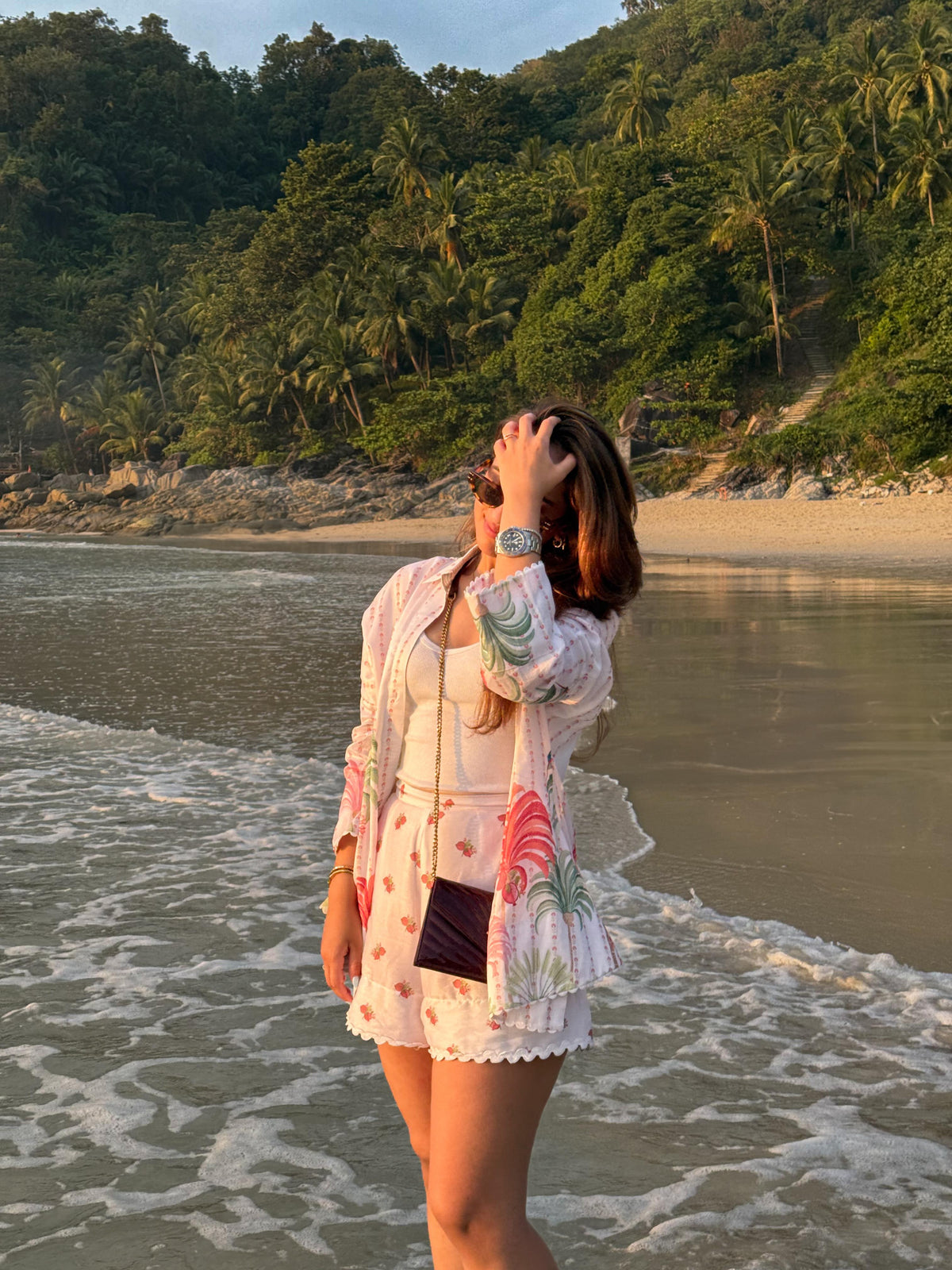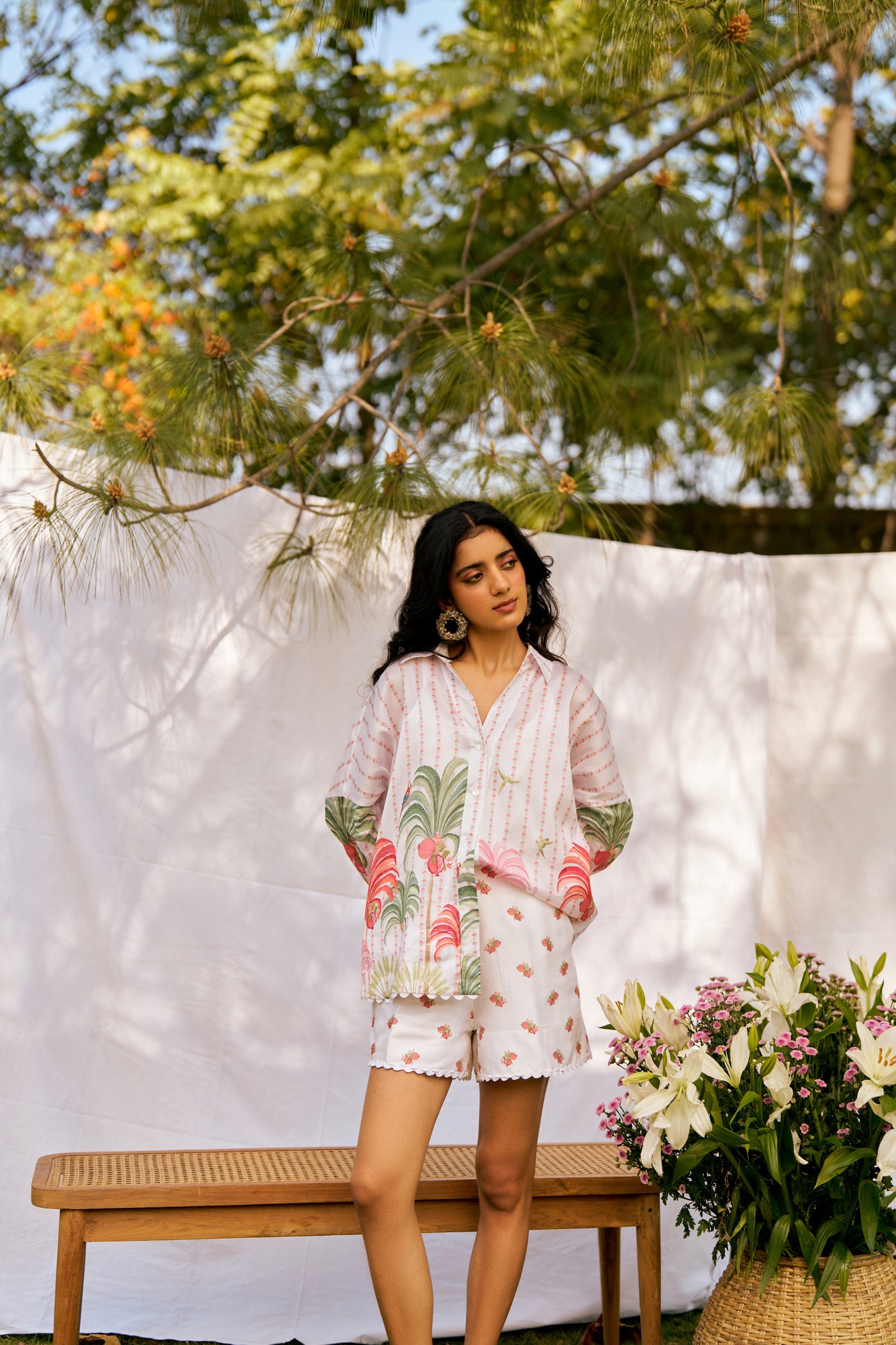 The Plume & Palms Co-ord Set is a stunning fusion of nature-inspired prints and contemporary design, perfect for those who crave a bold yet effortless look. This set combines the beauty of delicate plumes and tropical palm motifs, creating a striking pattern that evokes a sense of wanderlust and adventure. The top features a sleek, tailored fit with a flattering neckline, while the shorts provide comfort and a chic silhouette.