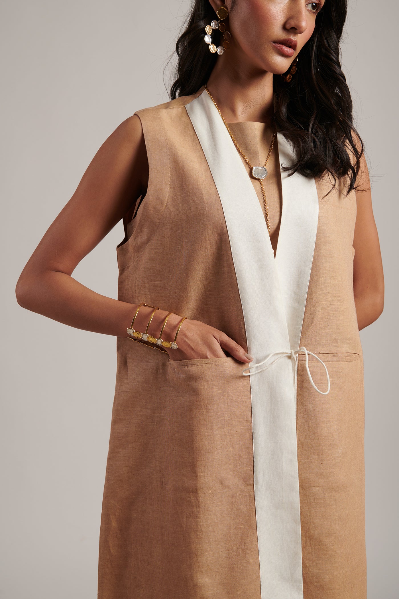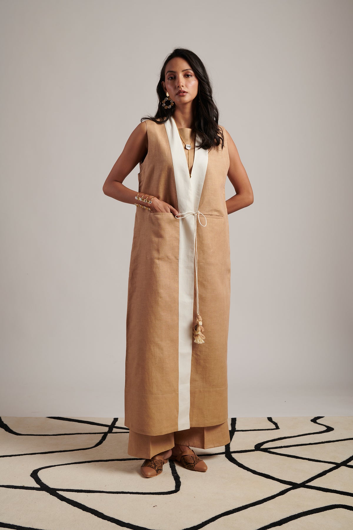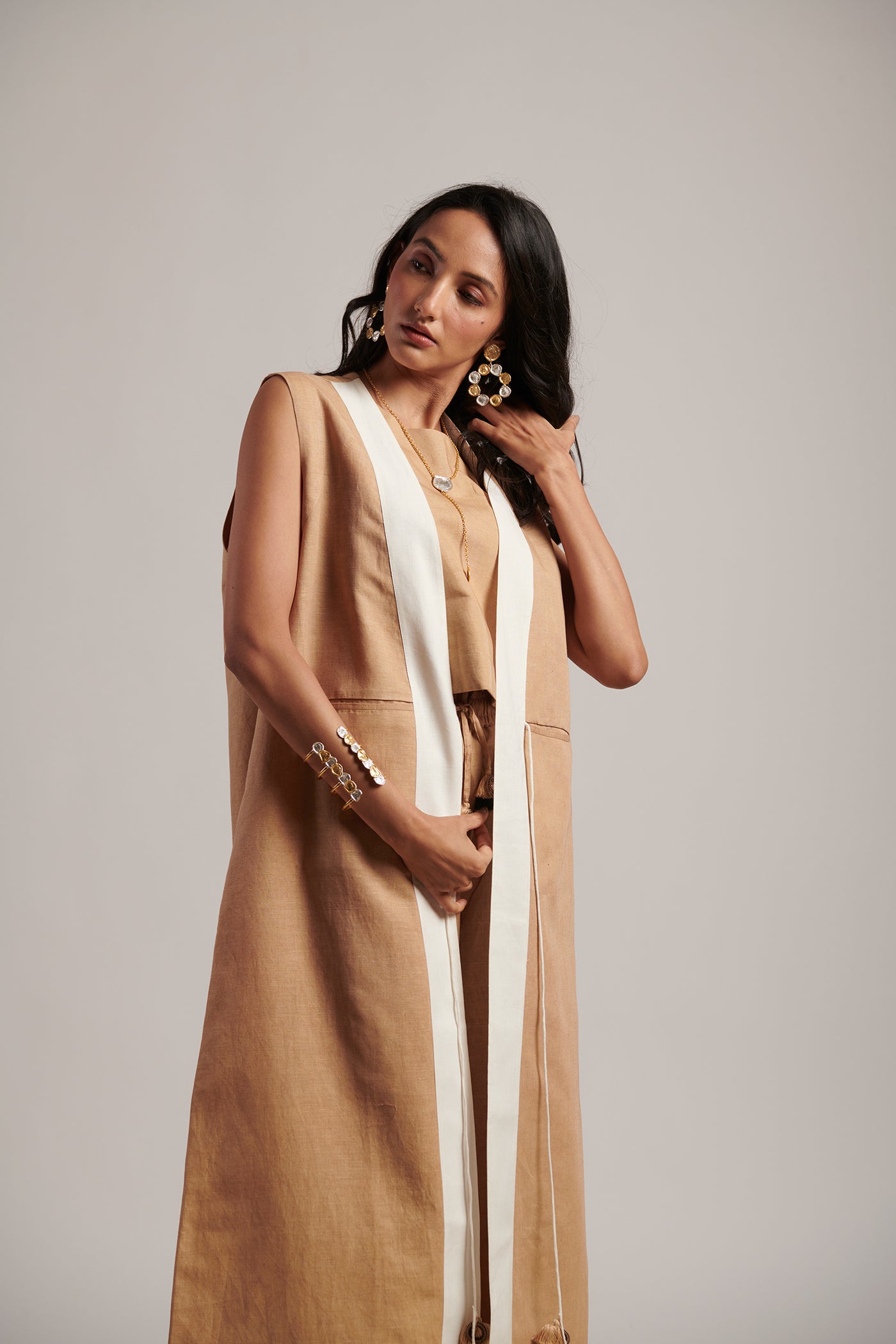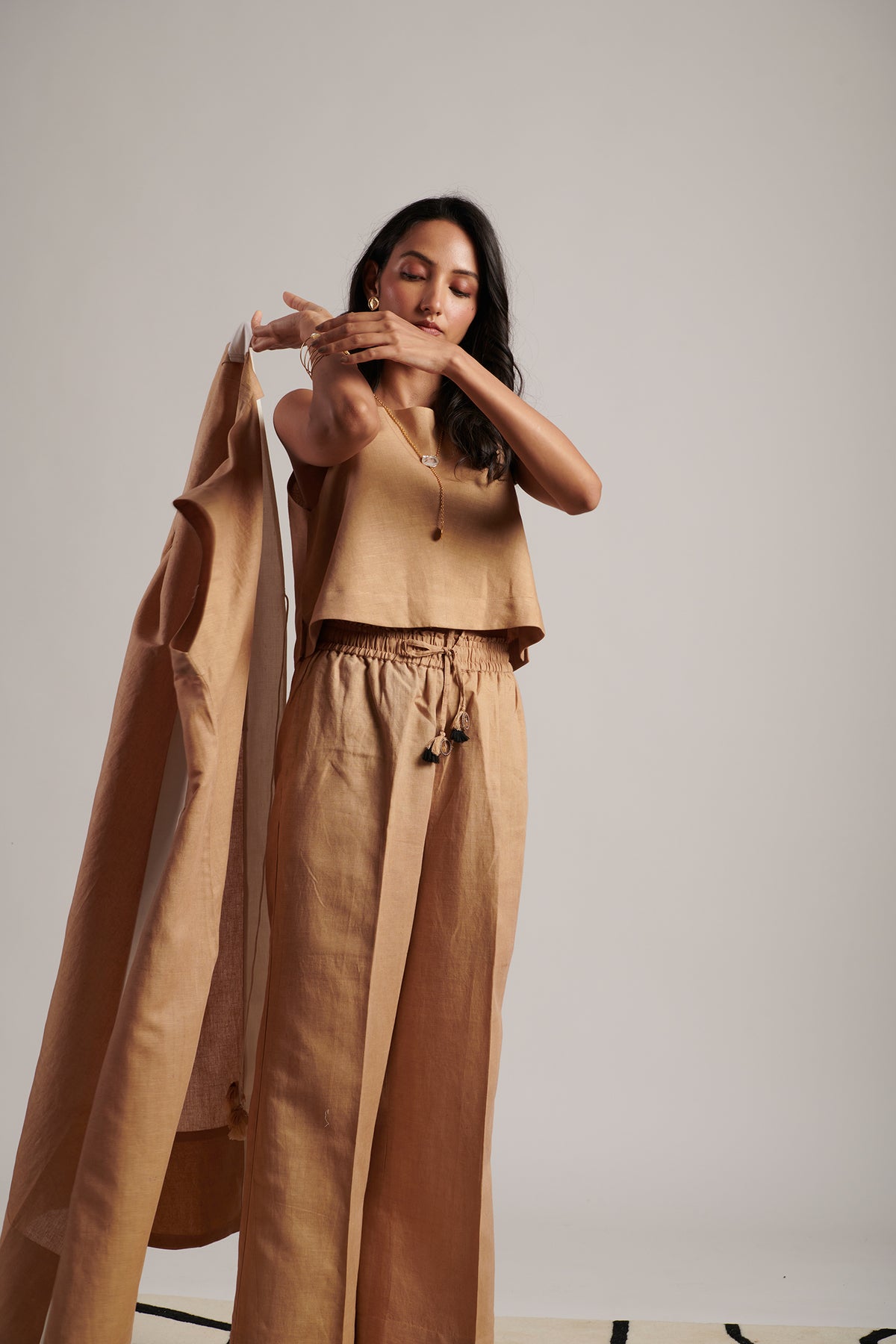 Arrive in time for a fashionably late high tea or maybe even an opera on an evening, you’ll fit right in with our Rooh Co-ord Set yet strikingly stand out. With the most minimal detailing like a tassel tie-up and contrasting front panel on the overlay and a super easy trouser, there’s an innate multiplicity in its persona that delivers high style impact, making it easy to move from event to the other and from one look to another.