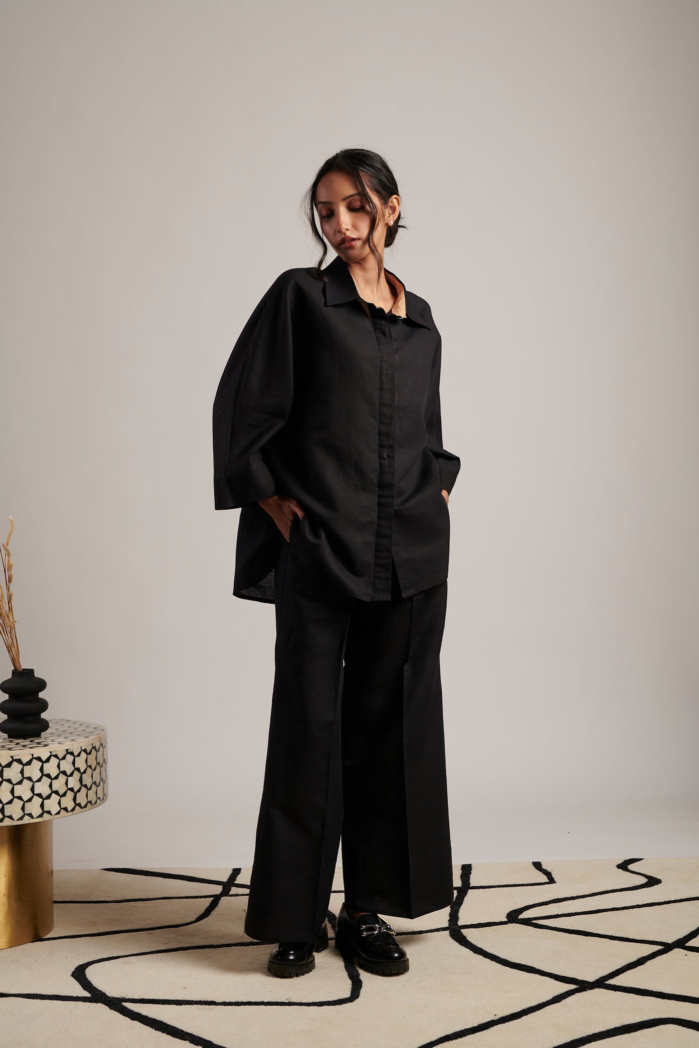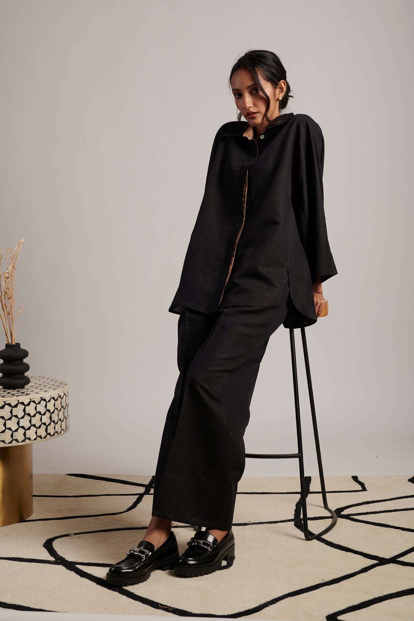 Give us a better combination than a classic shirt and trousers. We’ll wait. Timeless appeal, refinement, and breathability are just the first few things you’ll feel with our Serenity Co-ord Set that comes together as a crisp, pointy, contrasting panelled collar shirt and straight cut trousers with a tie-up detailing for comfort. An ensemble perfect for warm weather styling, to accessorise for your kind of corporate or to dress down on a routine day—all just the way you like.