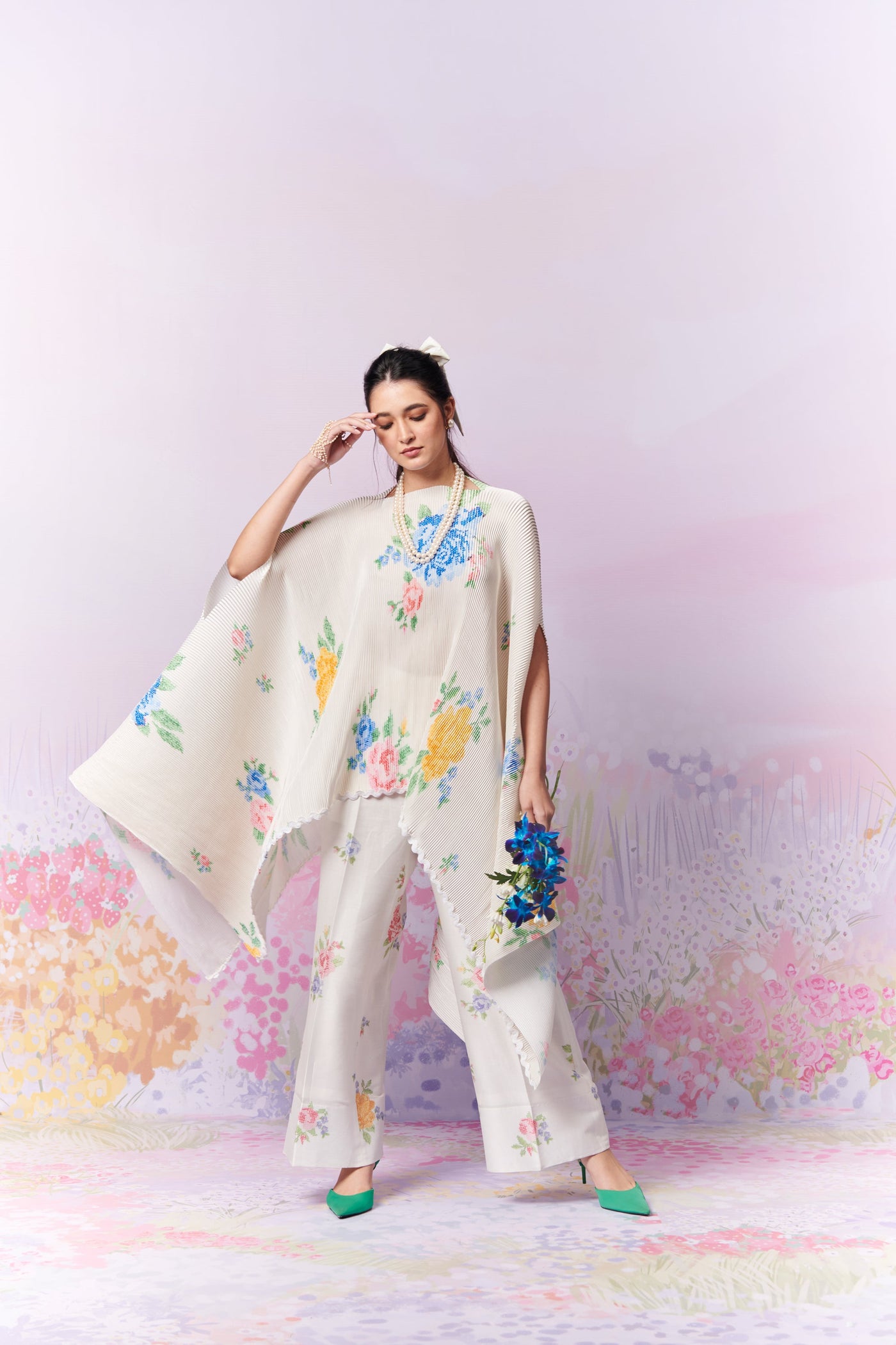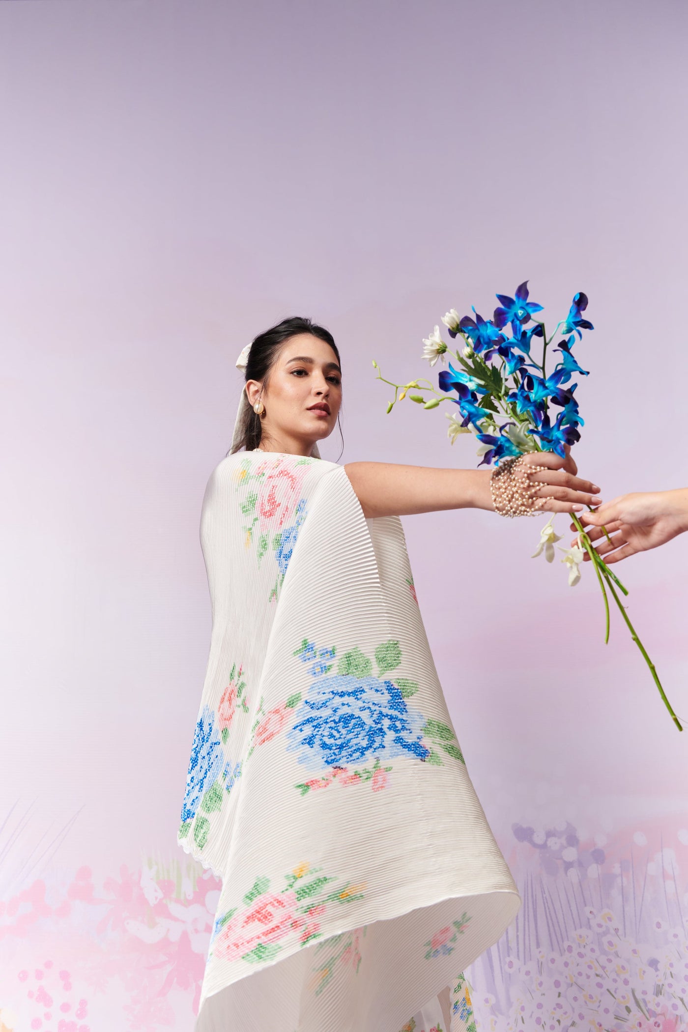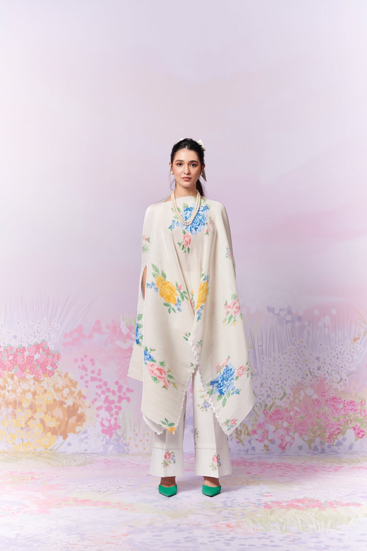 "Introducing the Summer Roses Cape, a symphony of elegance in Poly Satin. Its free-size pleated design offers effortless grace, adorned with cross-stitch roses that bloom with every movement. With a singular component, it celebrates simplicity and style, wrapping you in the essence of summer romance wherever you go.