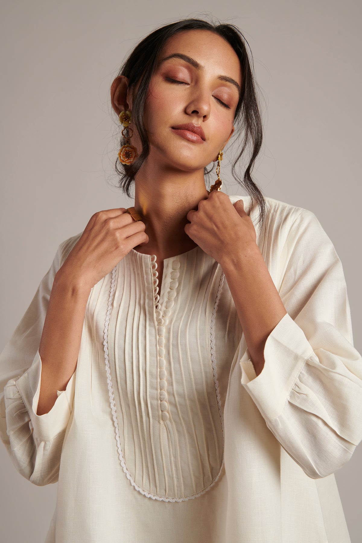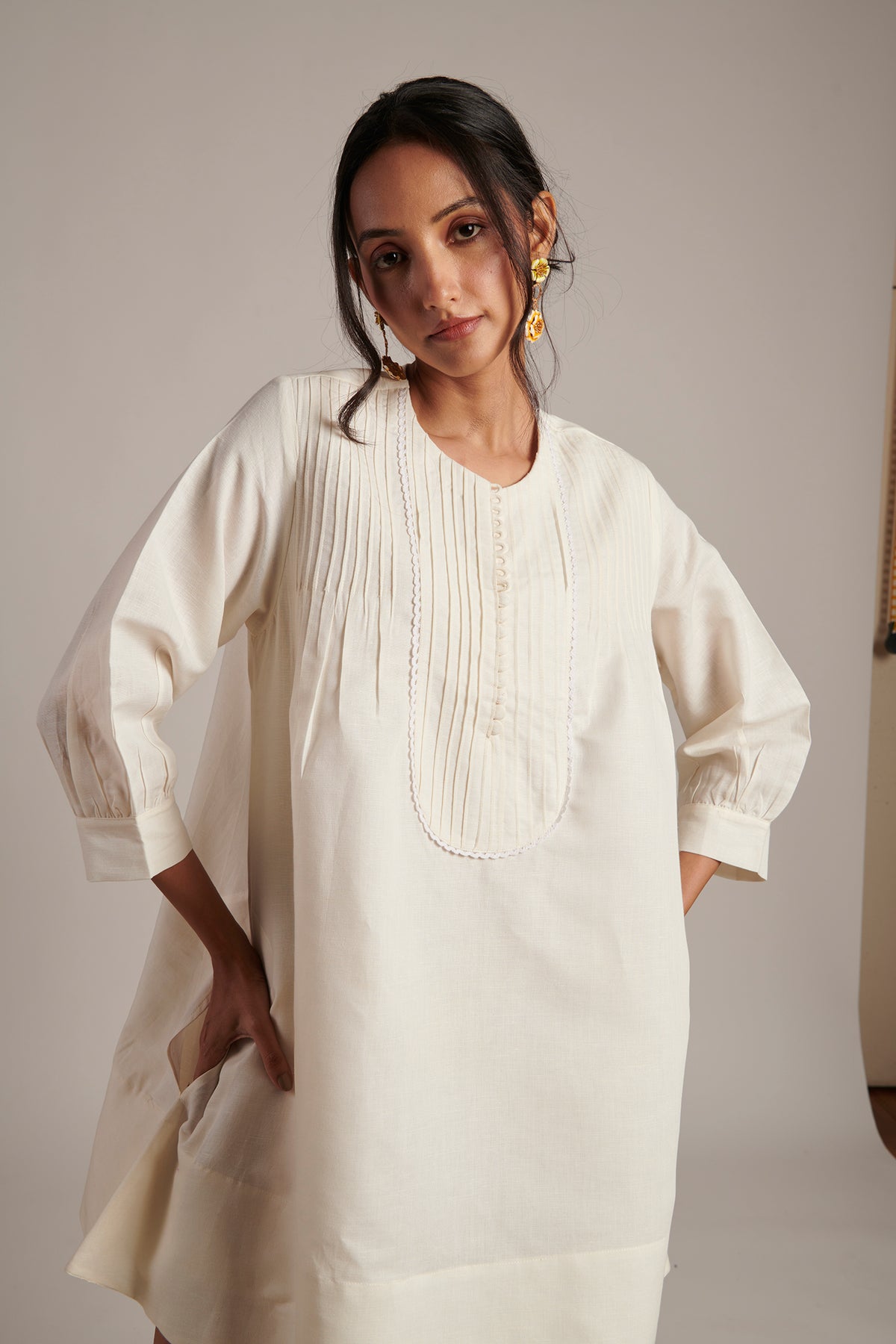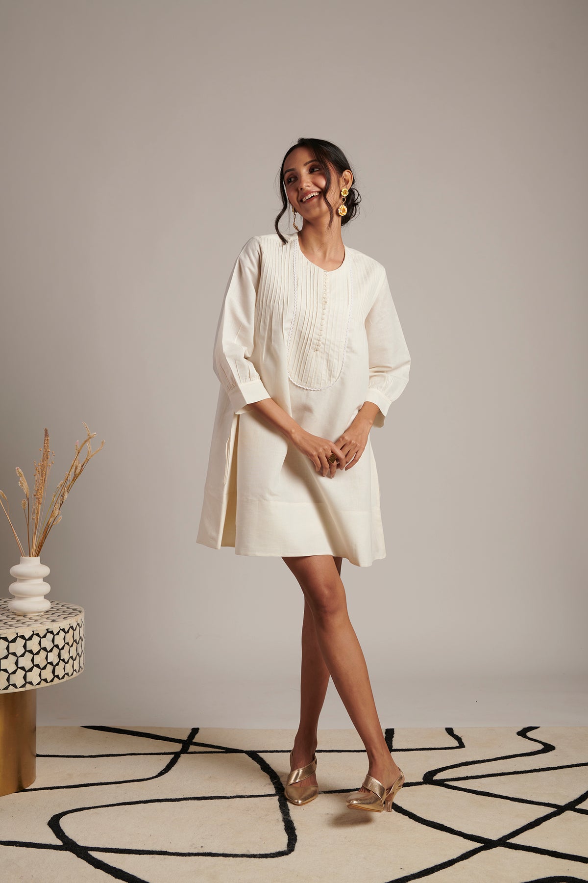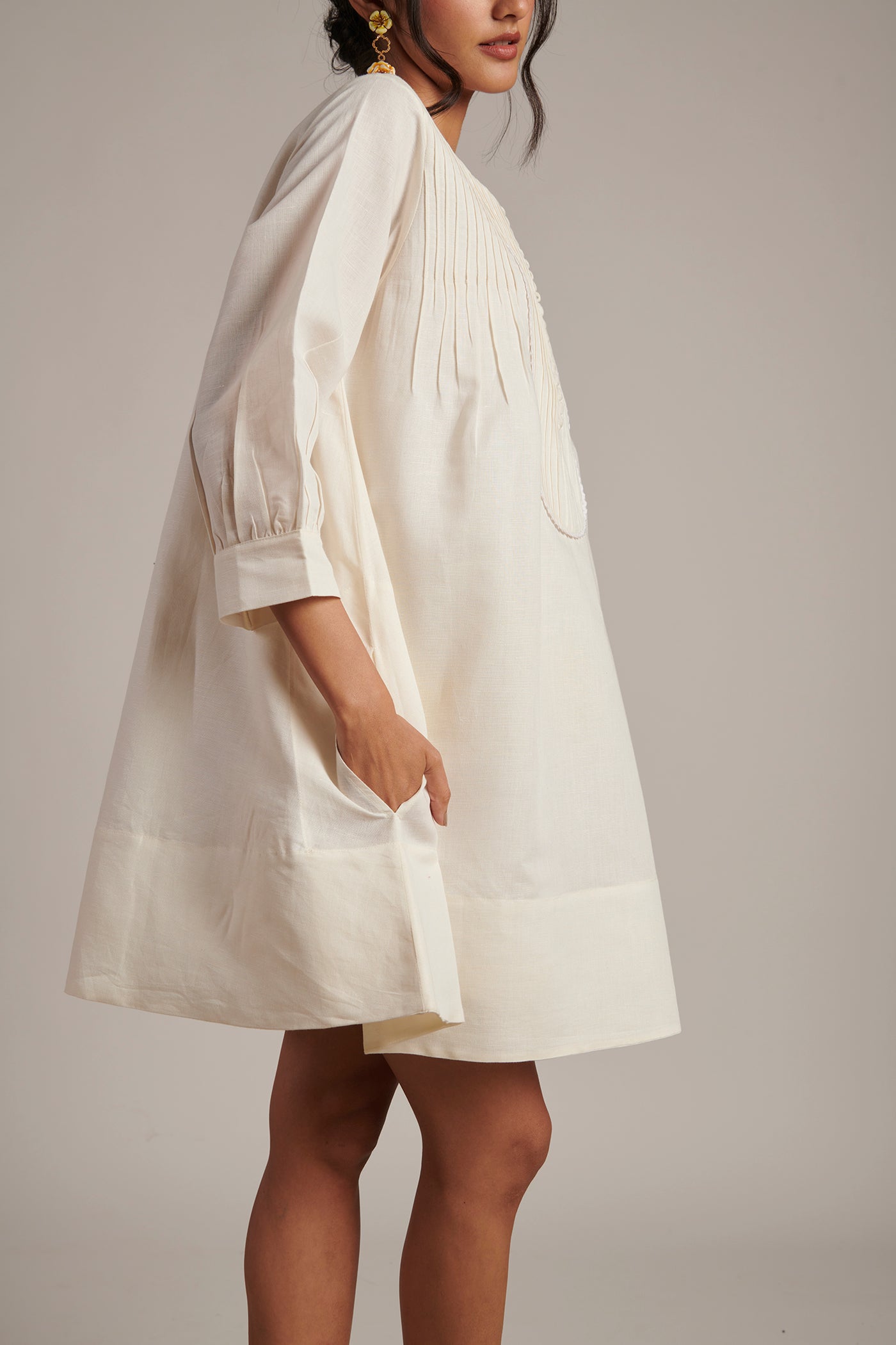 In a world of trends, here comes a classic. The Zarah dress details of a pin tuck front panel finished with handcrafted buttons that are laid over a breathable, airy silhouette that resembles the coming of three sixty-five days of summer. Dress effortlessly chic to a brunch or walk in relaxed to a picnic without letting go of your personal style.